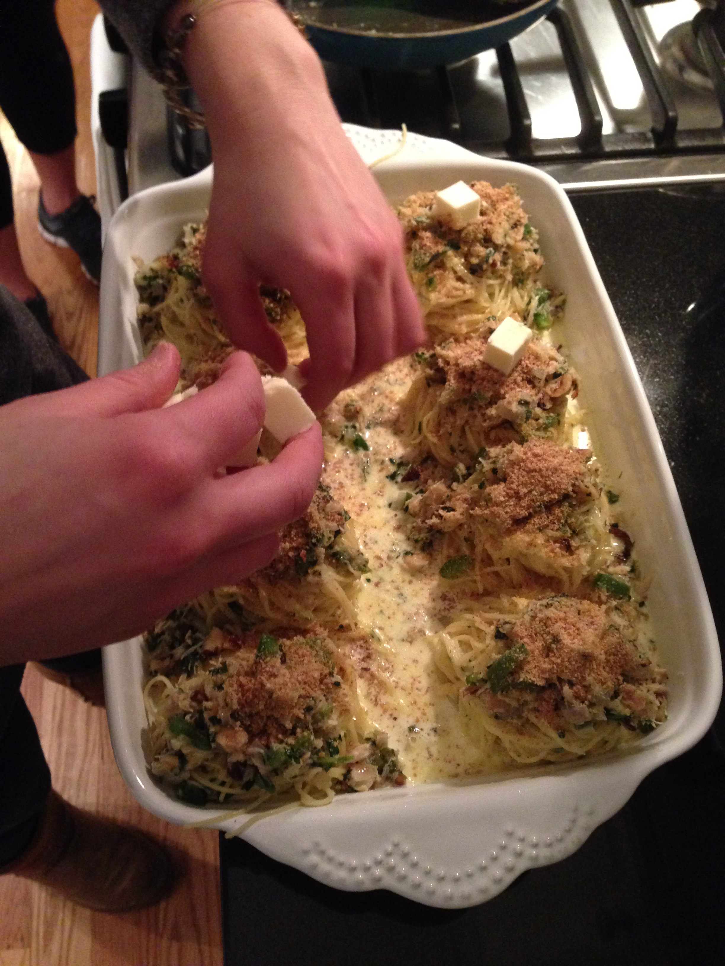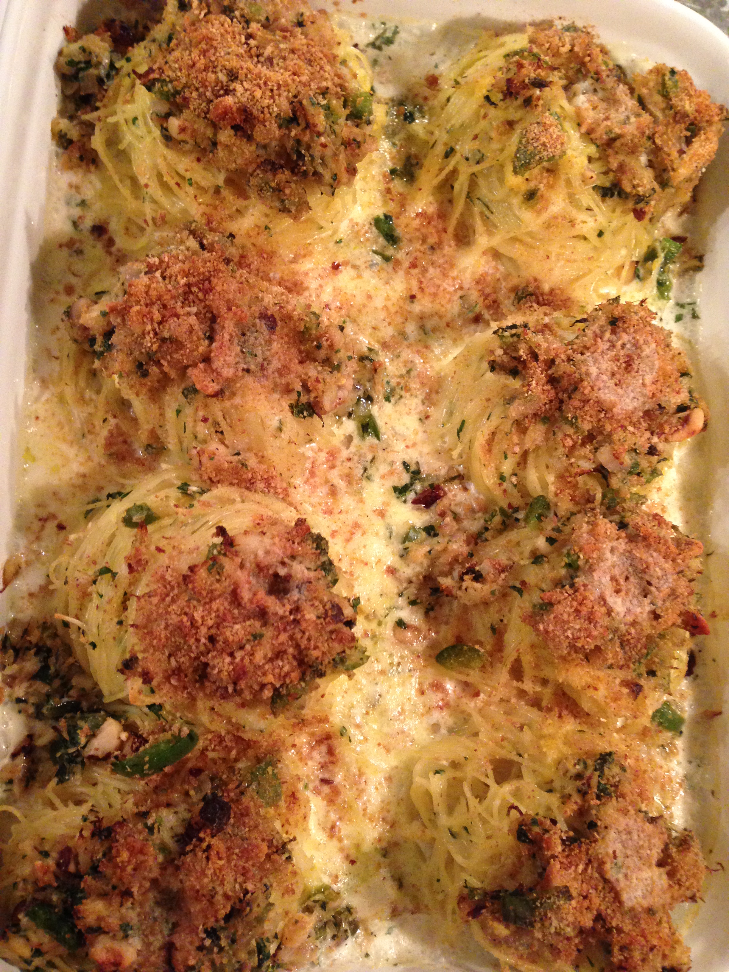 Cauliflower/anchovy/green olive crumbs