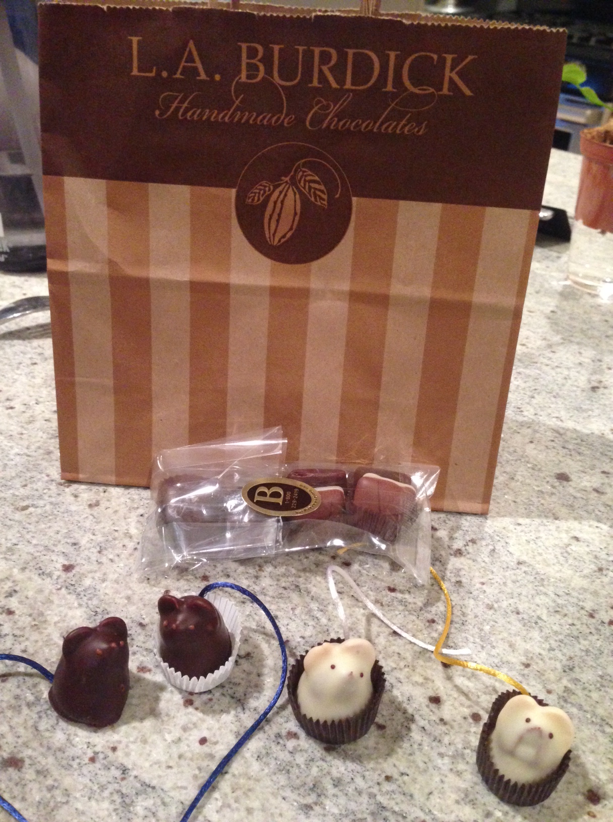 As you already know, I have quite the sweet tooth! Hence why I have brought on the help of the fitbit and Nike+ to make sure I am getting my steps in daily! I was on Newbury street yesterday, and I came across the cutest place to get coffee, tea, hot cocoa and homemade chocolates. I was in chocolate heaven! It’s called L.A Burdick and you can’t miss it. Lots of small tables inside to have your afternoon tea or coffee. It reminds me a little like Paris! Next time you are out and about on Newbury street stop in! And, I also wanted to share the chocolate mice we bought. They even have little tails!