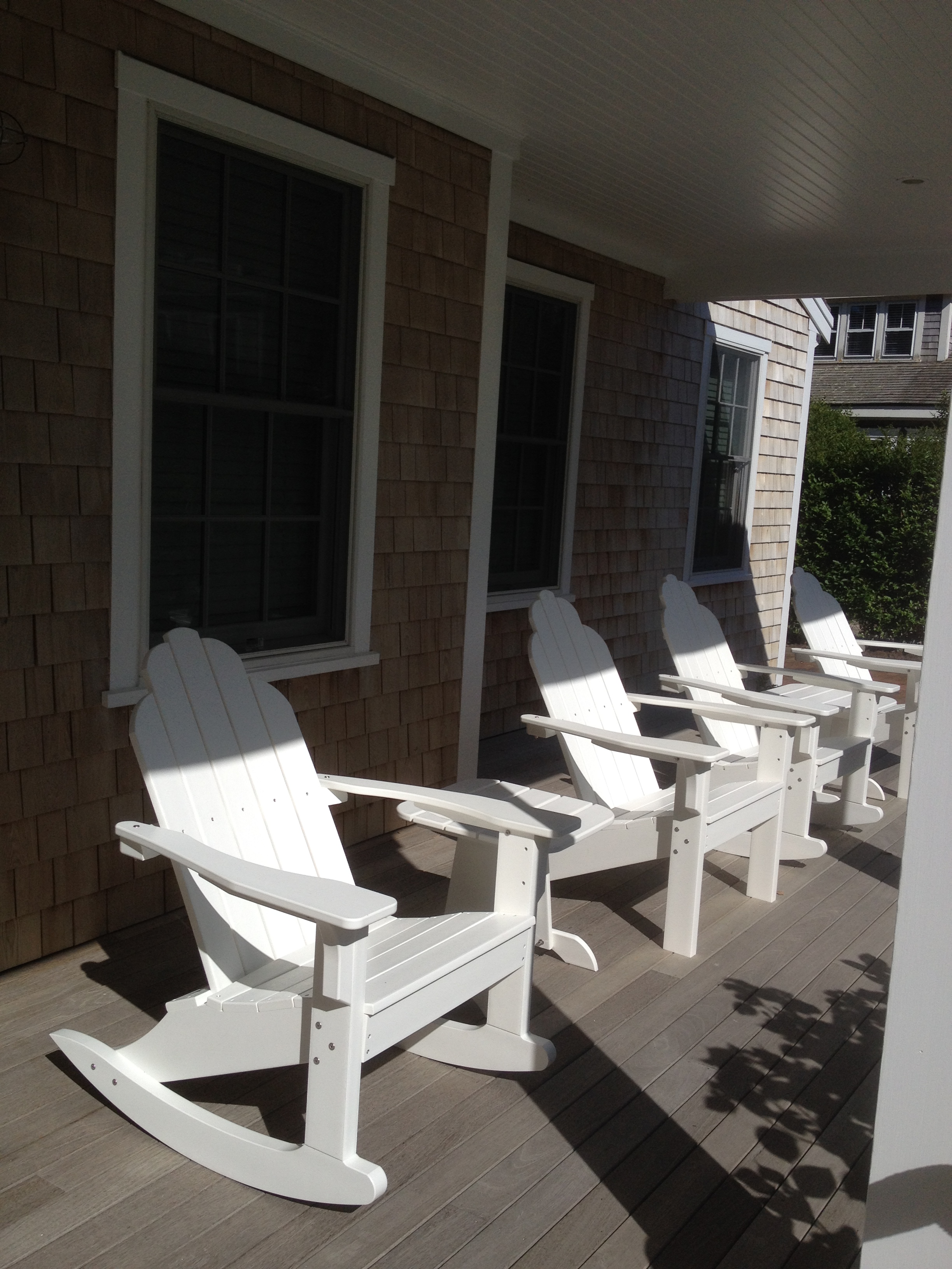 The farmers porch is fabulous! I don’t know why and I almost don’t dare say it out loud, but we haven’t had any mosquitoes in the evening. There are eight Adirondacks, four rockers and four classics on the porch. And yes, tables beside each for our evening beverages.